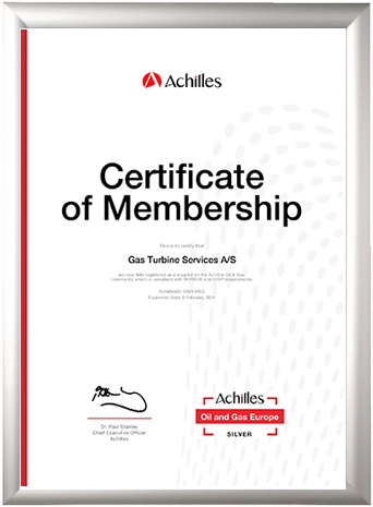 CERTIFICATIONSGas Turbine Services has achieved the following third party certifications Gas Turbine Services is a top choice for quality services with our list of third-party certifications. Achilles Oil & Gas Europe ACHILLIES UVDB (Silver+) ISO 45001:2018 ISO 9001:2015 ISO 14001:2015 HISTORIC CERTIFICATION 2003-2015 Contact Us